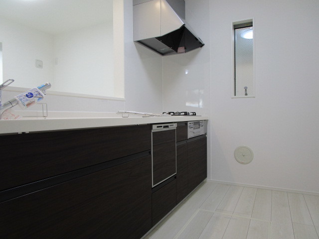 リビングやダイニングに対面する形で作業できる開放的なキッチンなので、
