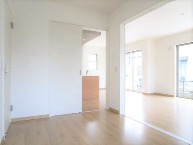 【1号棟】キッチンからリビングダイニングを見渡せます。