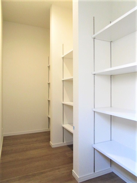収納棚には小物や季節のお花などを置いてもいいですね。