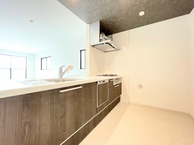 ゆとりのワークトップで配膳用のお皿を並べながらの調理もできそうですね。調理動線を考慮したシステムキッチンで、快適にお料理ができます。