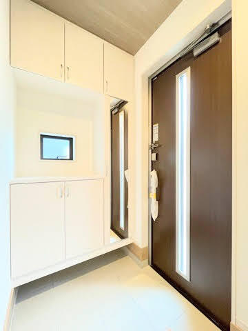 玄関には小物を飾っておけるスペースがあります。 アルコール消毒液などを置いて感染症対策できちゃいます♪