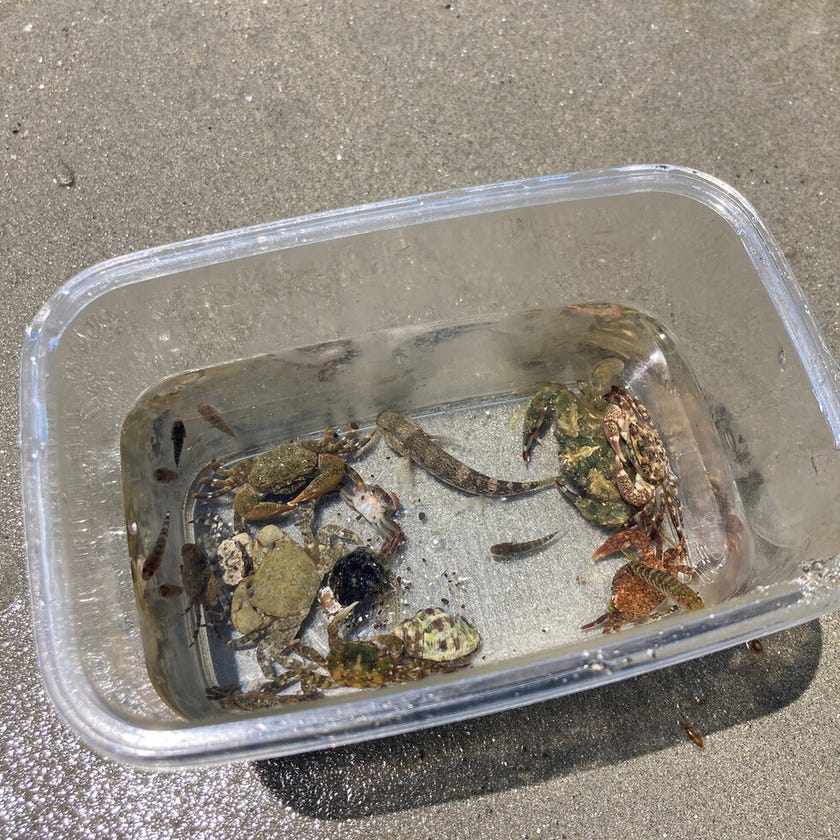 蟹や小さな魚が沢山とれて、
